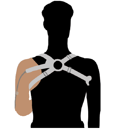 Тяговый бандаж плеча Б-3Г предназначен для управления сгибанием локтевого сустава и раскрытием рабочей насадки или кисти тягового протеза плеча.